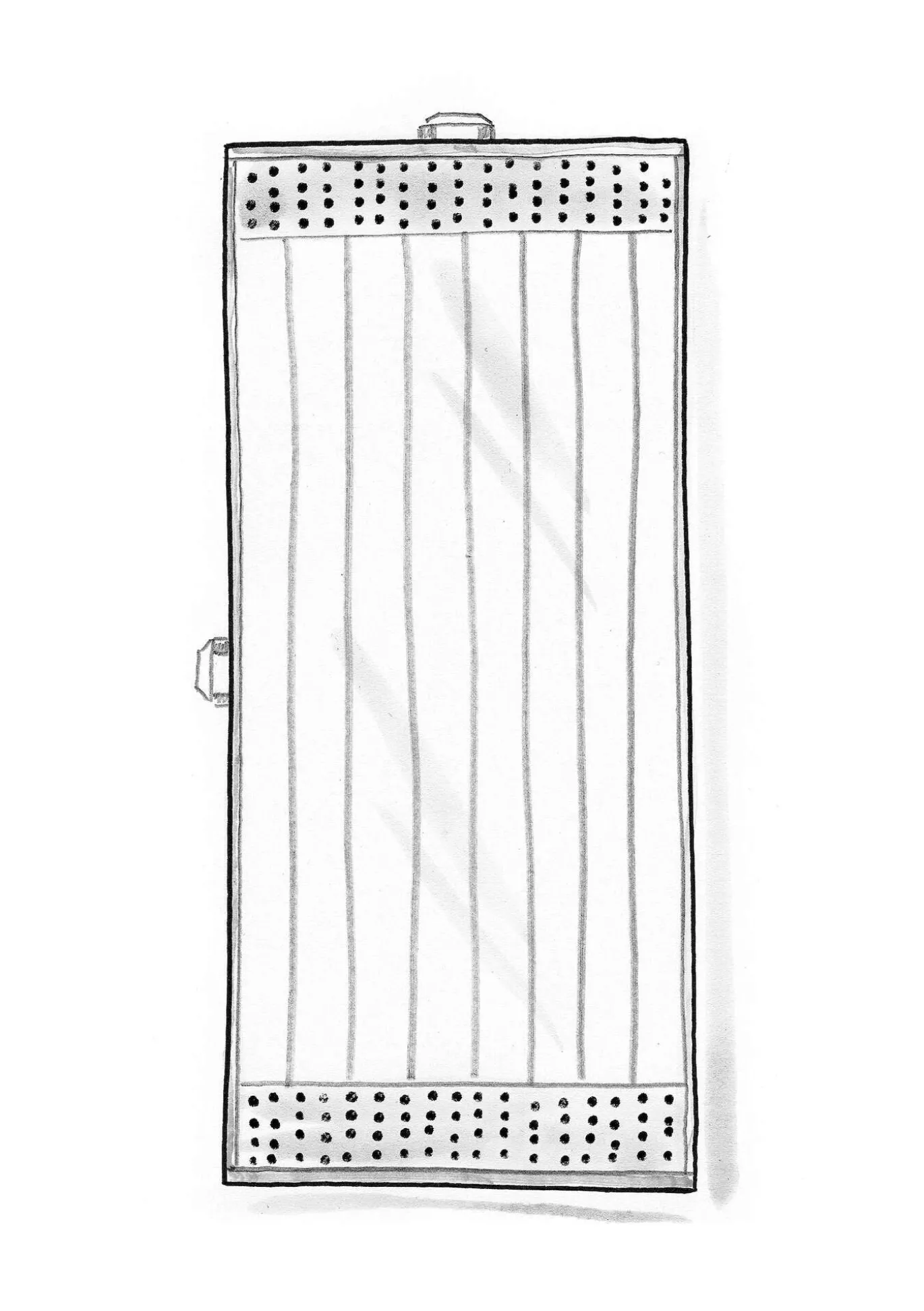 Suihkupyyhe, jossa on raitoja ja pilkulliset boordit. Kontrastiväriset reunat ja ripustuslenkki lyhyellä ja pitkällä sivulla.