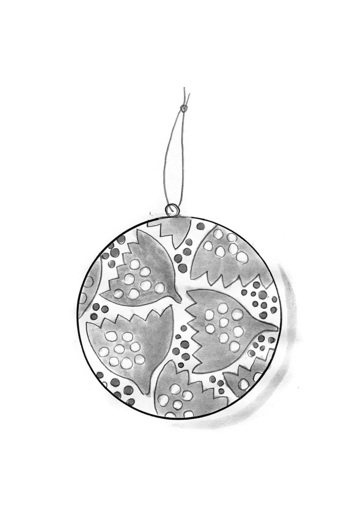Klassinen paperimassasta valmistettu käsinmaalattu joulupallo. Saatavilla eri kuvioita ja hienoja väriyhdistelmiä kodin koristamiseen. Kullanhohtoinen ripustuslenkki.