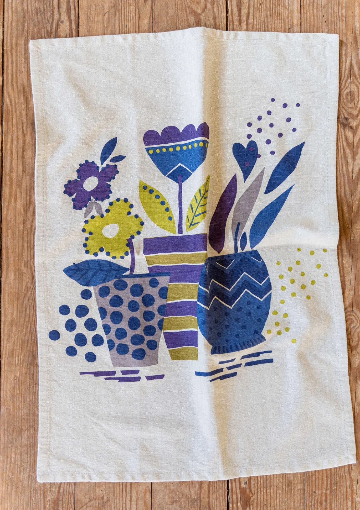 Keittiöpyyhe ”Flower pots” ekopuuvillaa