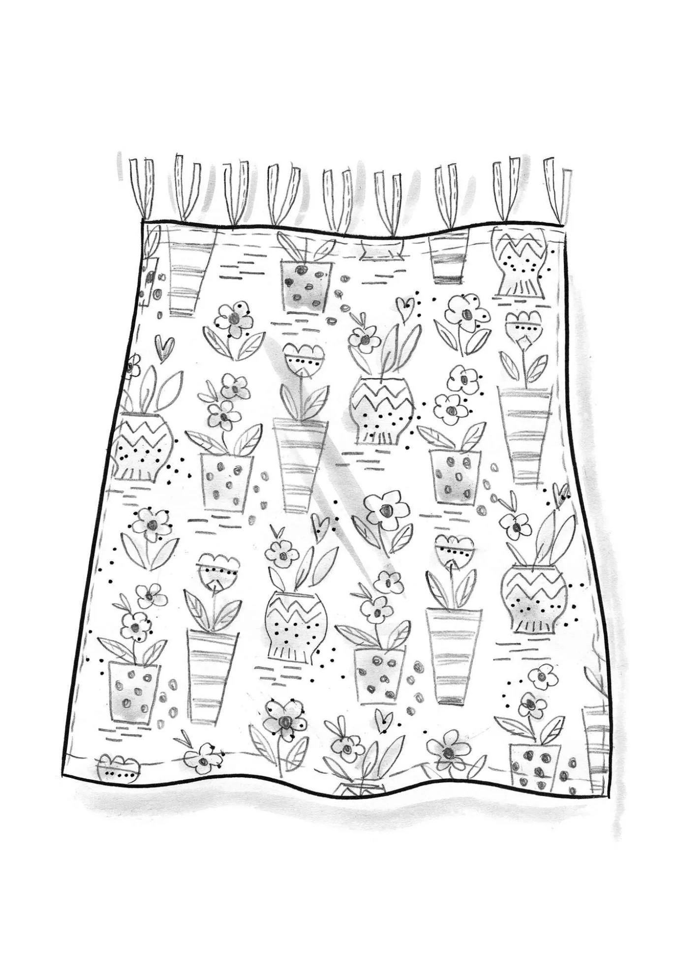 Lyhyt verho ”Flower pots” ekopuuvillaa