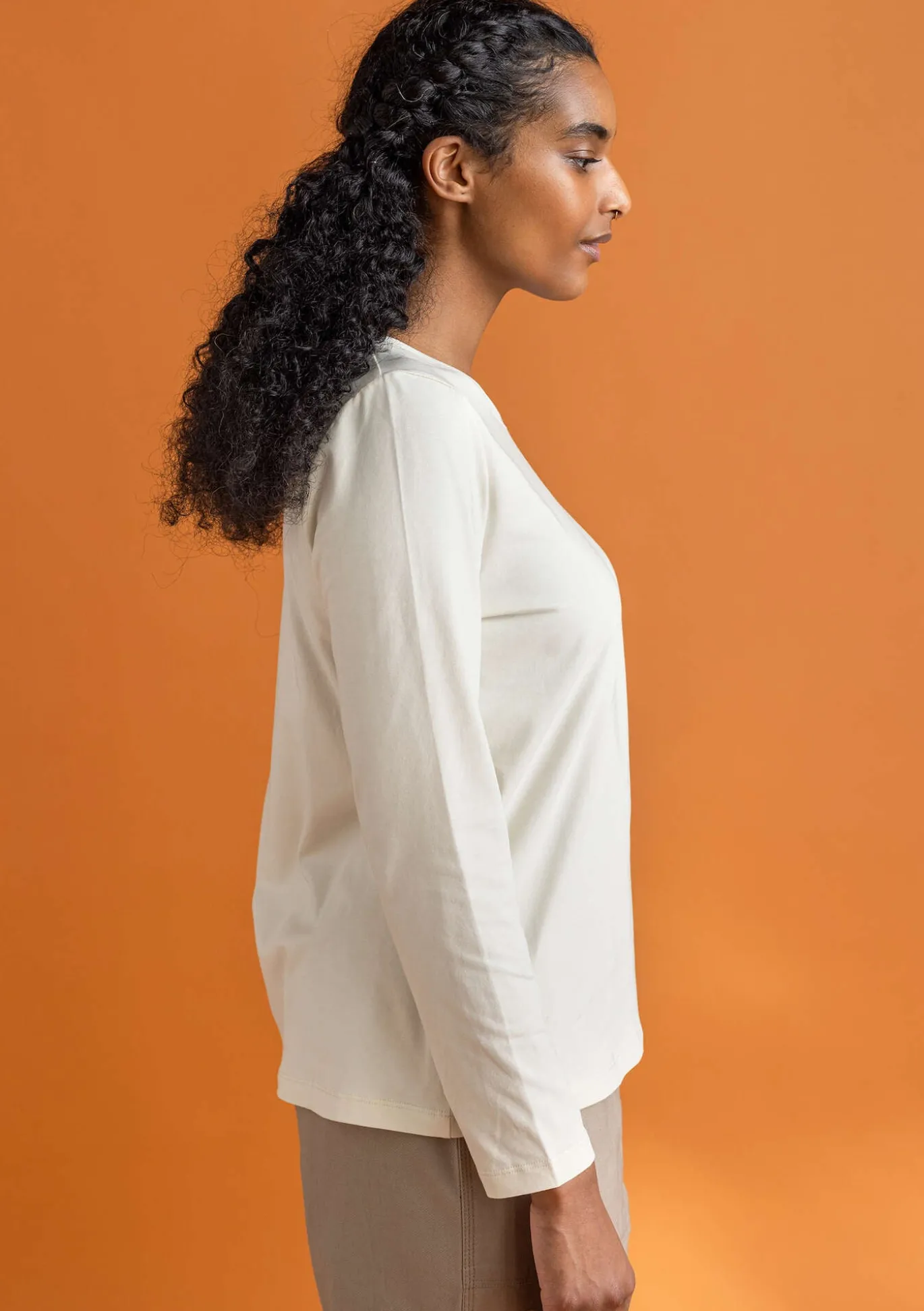 Monikäyttöinen malli, pyöreä pääntie ja täyspitkät hihat. Saatavana on sekä yksivärisiä että pienellä painetulla ”Ylva”-kukkakuviolla somistettuja vaihtoehtoja.